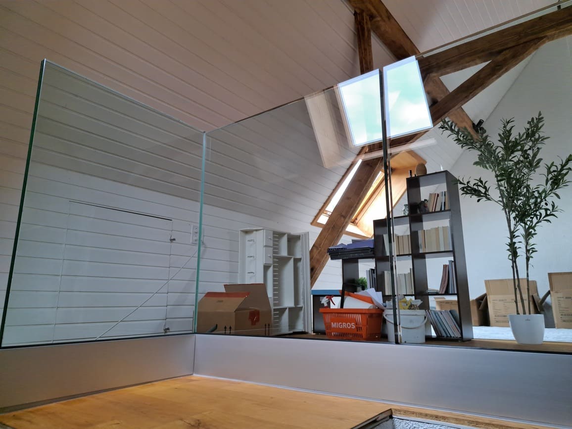 Glas bringt Helligkeit ins Innere, macht Räume grosszügiger und schafft so ein freundliches Wohn- und Arbeitsumfeld. Raumteiler aus Glas, Glasschiebewände oder Spiegelwände schaffen neue Räume. Unterschiedlichen Glastypen (transparent, halbtransparent blickdicht oder bedruckt) stehen zur Wahl je nach Bedürfnis der Nutzer. Glas wirkt immer leicht und lässt sich perfekt mit anderen Materialien kombinieren. Wir fertigen auch Glasgeländer oder -Brüstungen für den Innenbereich, hinterleuchtete Glaswände mit Bildern bedruckt, Tablare und Glasvitrinen. Unsere kreativen Glaslösungen, passend zur jeweiligen Raumfunktion und sorgen sie für ein perfektes Ambiente.
